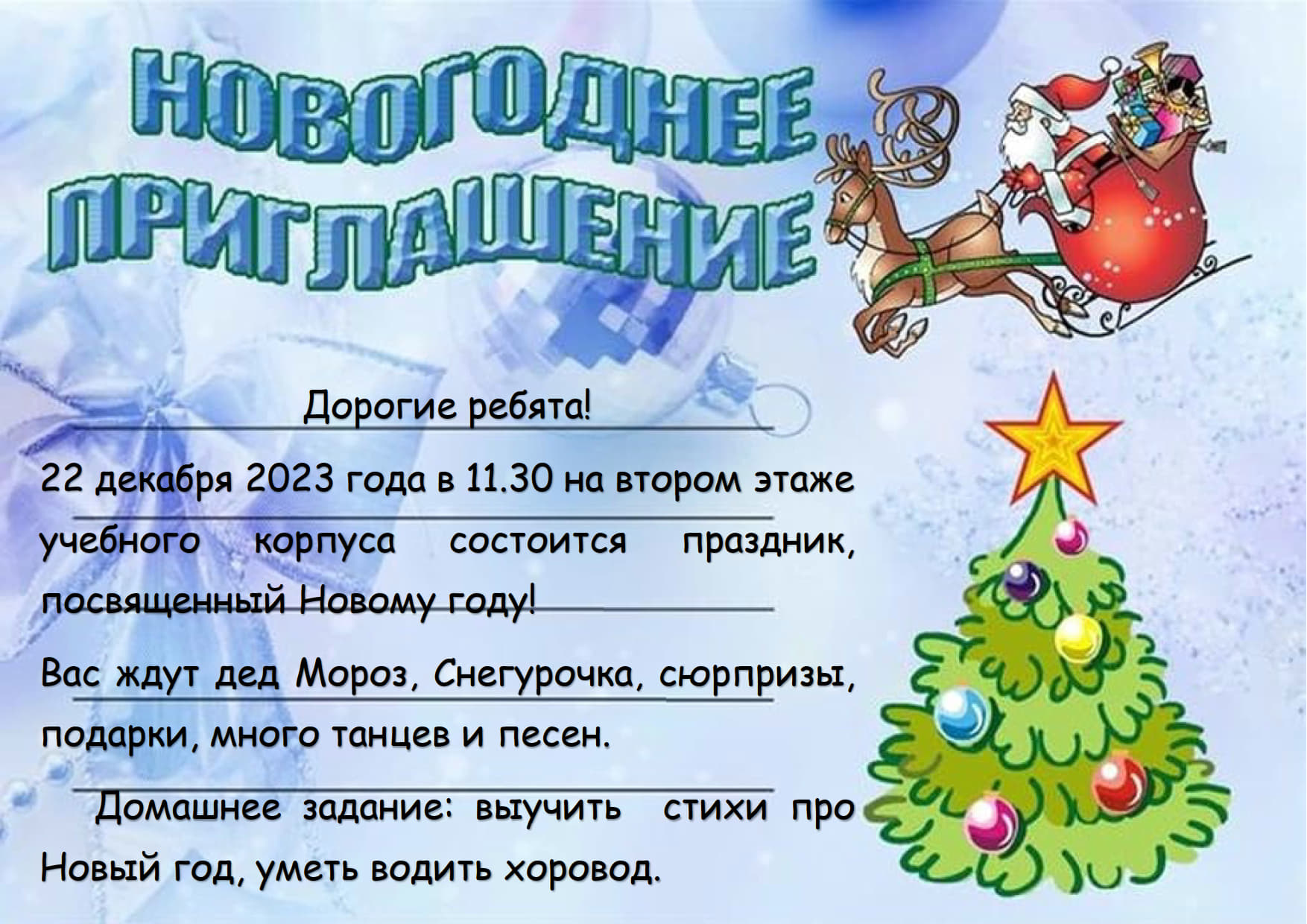 22 декабря 2023 года в 11.30 на втором этаже учебного корпуса состоится праздник, посвященный Новому году!