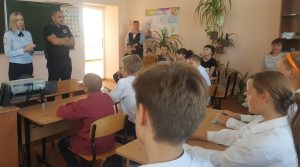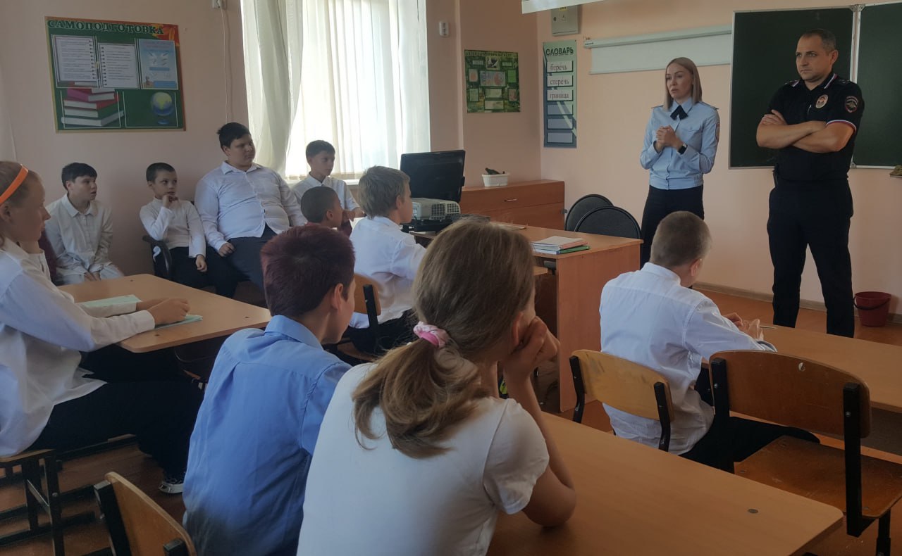 В рамках месячника «Безопасная Кубань» в нашей школе прошла встреча с сотрудниками полиции: инспектором ПДН Алиной Павловной Тарабаровой и участковым полиции Саркисом Артушевичем Маргаряном. Полицейские подробно рассказали ребятам, как важно соблюдать Закон Краснодарского края №1539, как уберечь себя от опасности, как соблюдать правила дорожного движения, как вести здоровый образ жизни. Инспектор ПДН акцентировала внимание старшеклассников на опасные последствия употребления алкоголя и табака. Ребята задавали интересующие их вопросы, обсуждали с полицейскими волнующие подростков проблемы.