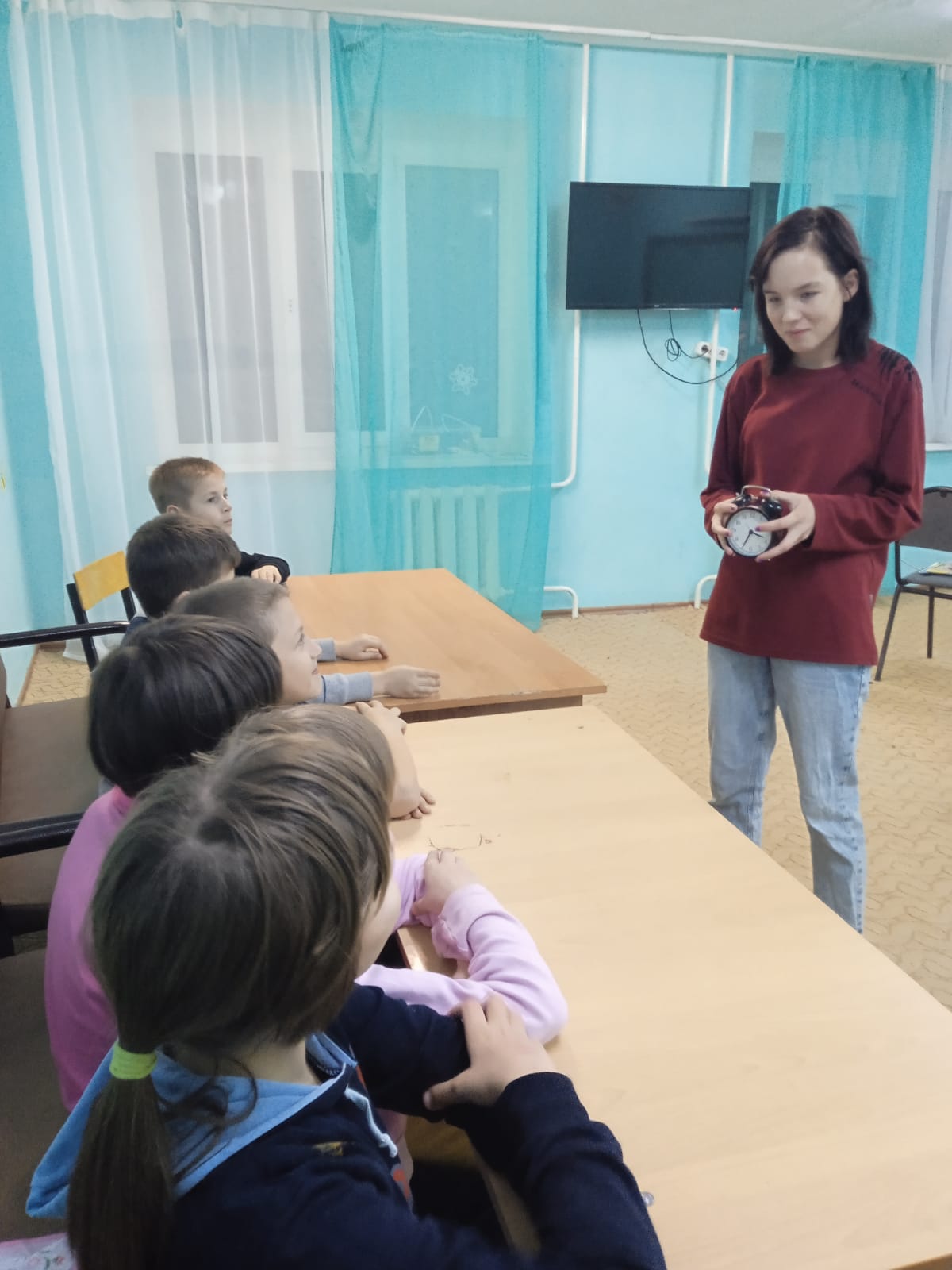 Ребята прослушали сказку «Волшебство ритмов дня», которая помогла понять, как важно соблюдать распорядок. Затем поиграли в игру «Части суток», что добавило веселья. В завершение занятия каждый из участников нарисовал часы и отметил на них основные режимные моменты: время для учёбы, игр, отдыха и сна.