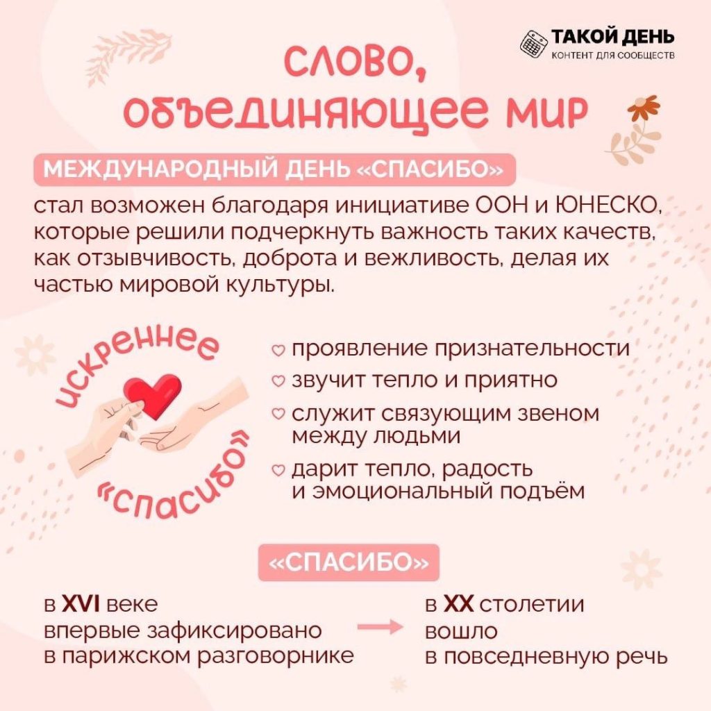 Сегодня мы отмечаем особенный день, который напоминает нам о значении признательности в нашей жизни. Каждый из нас играет важную роль в жизни других людей — будь то родные, друзья, коллеги или даже знакомые. Порой простое слово «спасибо» может изменить чье-то настроение и сделать день чуточку светлее.