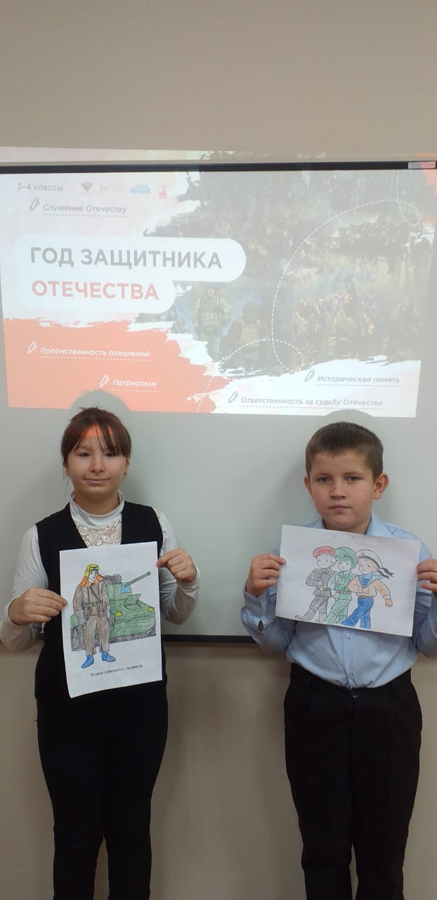 27 января прошли «Разговоры о важном» на тему «Год защитника Отечества». На занятии ребята обсудили, что значит быть защитником своей Родины. Говорили о храбрости, верности и уважении к тем, кто служит в армии и защищает нашу страну.