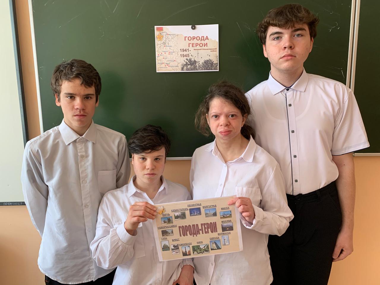 1 апреля в 10 классе прошёл урок мужества «Города-герои Великой Отечественной войны». На занятии ребята узнали, что значит понятие «города-герои» и сколько их всего.