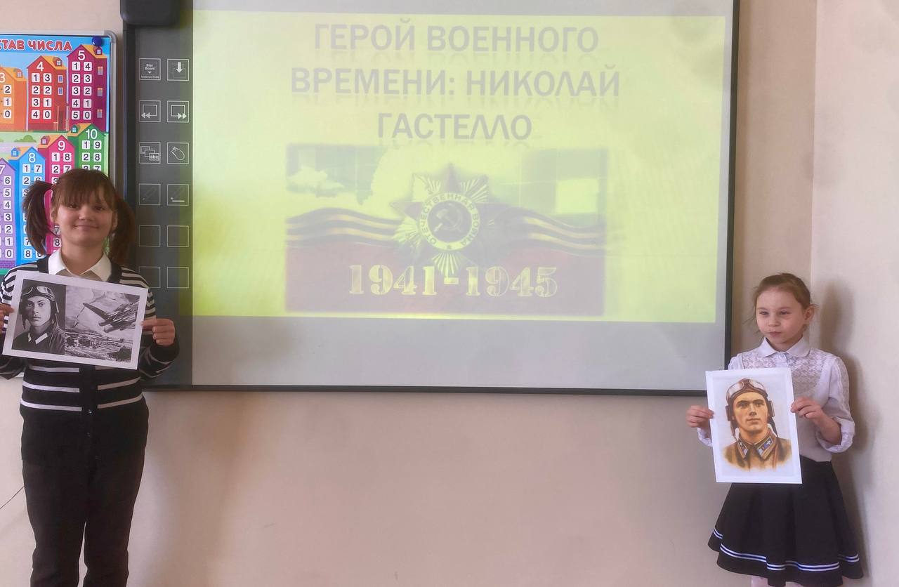 🌟 Во 2-3 классах прошел Урок мужества на тему «Герой военного времени: Николай Гастелло». Ребята узнали, что Николай Францевич Гастелло — советский летчик, проявивший выдающиеся качества в годы Великой Отечественной войны. Его жизнь и подвиги отражают дух настоящего патриота.