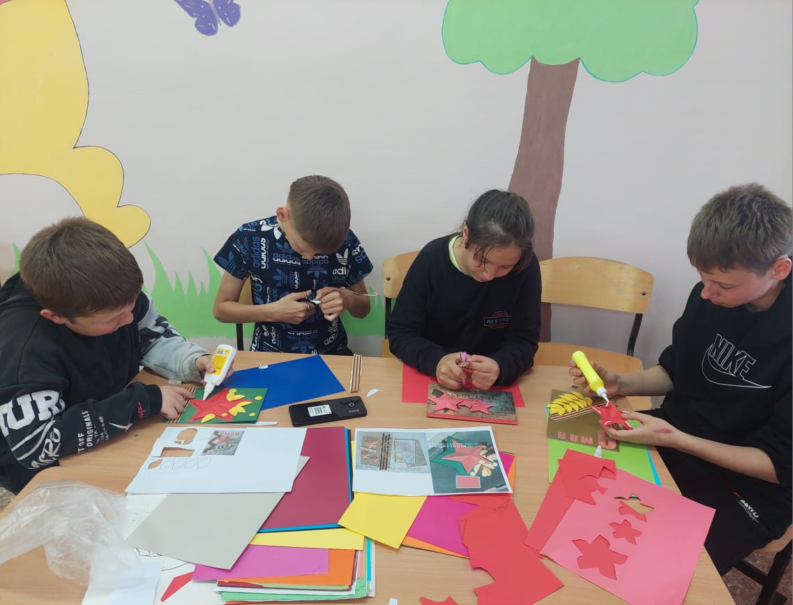 В рамках кружка «Умелые ручки» прошёл мастер-класс по изготовлению открыток ко Дню Победы. Ребята с большим энтузиазмом принялись за работу, используя различные материалы и техники.