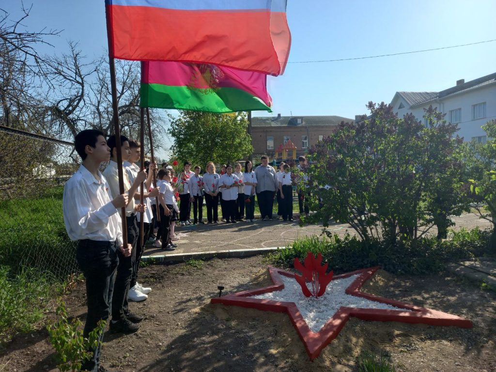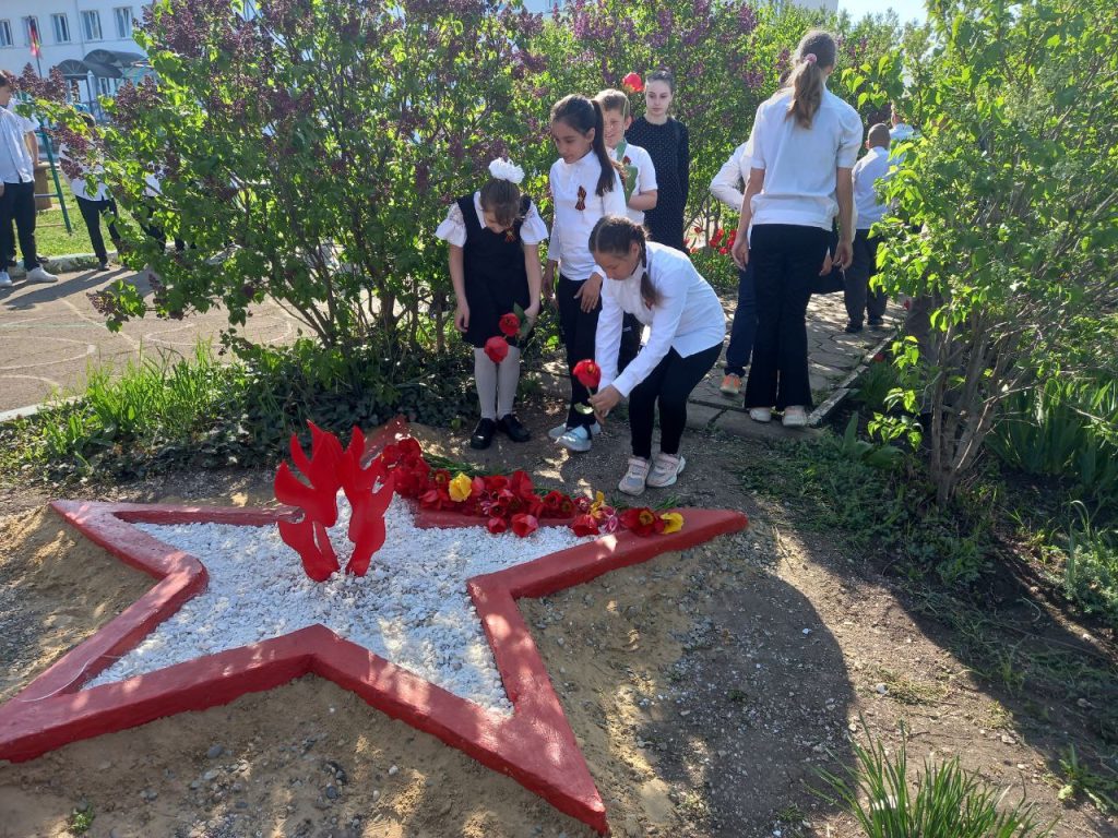 Вместе с педагогами ребята почтили память павших минутой молчания и возложили цветы к памятному знаку.