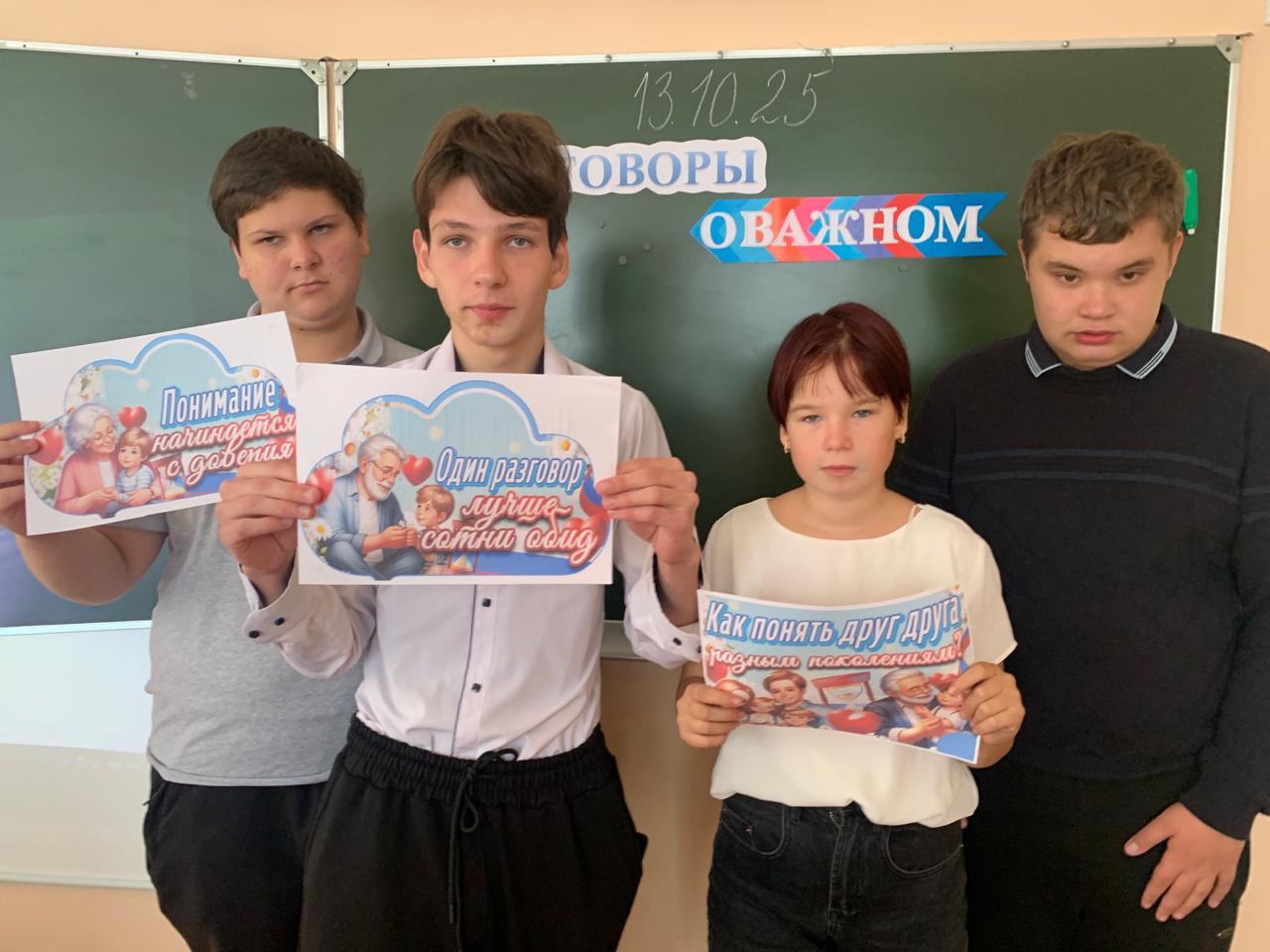 13 октября прошли «Разговоры о важном» на тему «Как понять друг друга разным поколениям?». На занятии ребята активно обсуждали, как важно налаживать коммуникацию между родственниками разных возрастов. Они пришли к выводу, что семья – это настоящая дружная команда, где каждый готов поддержать другого в трудную минуту.