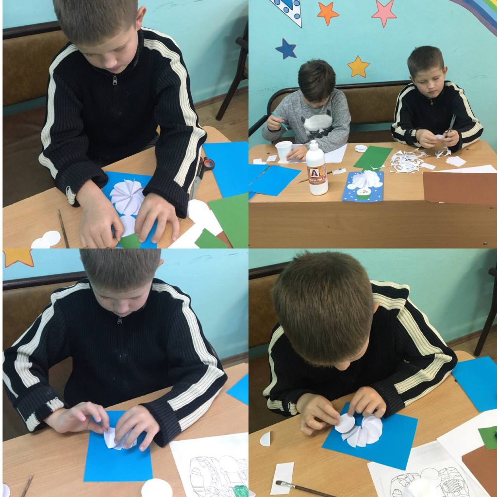 Кроме увлекательной беседы, дети продолжали осваивать важные навыки: вырезание аккуратных деталей из бумаги и правильное использование клея. Каждый ребенок с удивлением и восторгом создавал своего собственного снеговика.